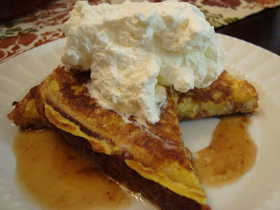 - Transfer the French toast to plates. Dollop the fresh whipped cream atop each. Lightly dust with the powdered sugar (optional). Drizzle the cinnamon syrup over and around the French toast and serve immediately.