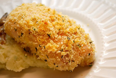 But times have changed and I stopped buying those things. Thank goodness for Alton Brown because his recipe for chicken kiev puts the supermarket versions to shame! The tender chicken remains juicy and that burst of fresh herb butter in the middle adds some buttery goodness. Rather than frying the kievs as originally called for in the recipe, I baked mine instead. I also added some finely shredded Parmesan cheese to the breadcrumb mixture for additional flavor and to help it brown nicely in the oven. The results?They were absolutely delicious... and no leftovers!